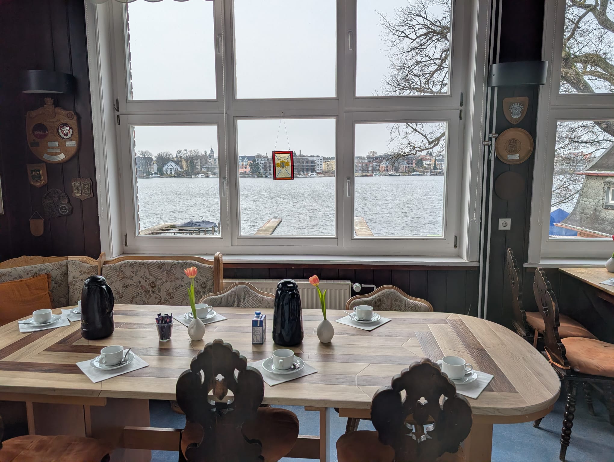 Im großen Saal und in der Veranda.