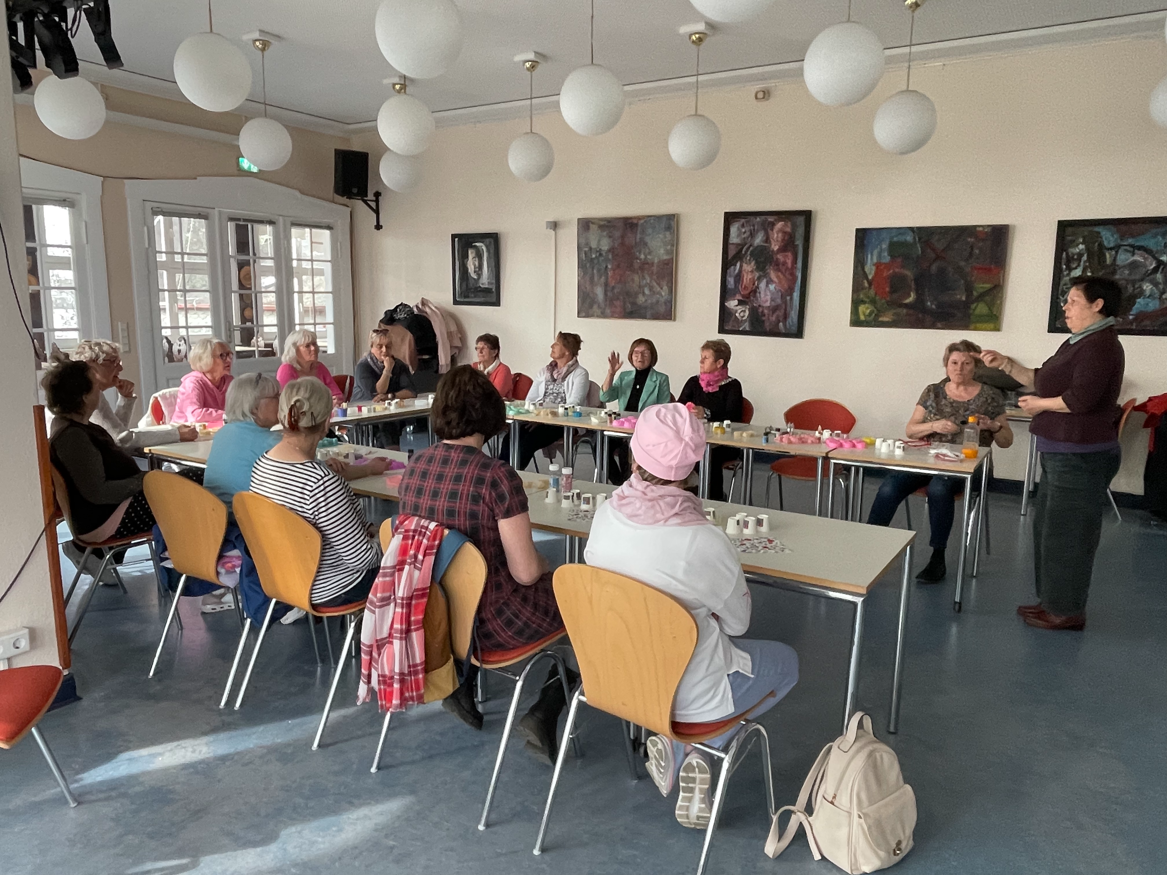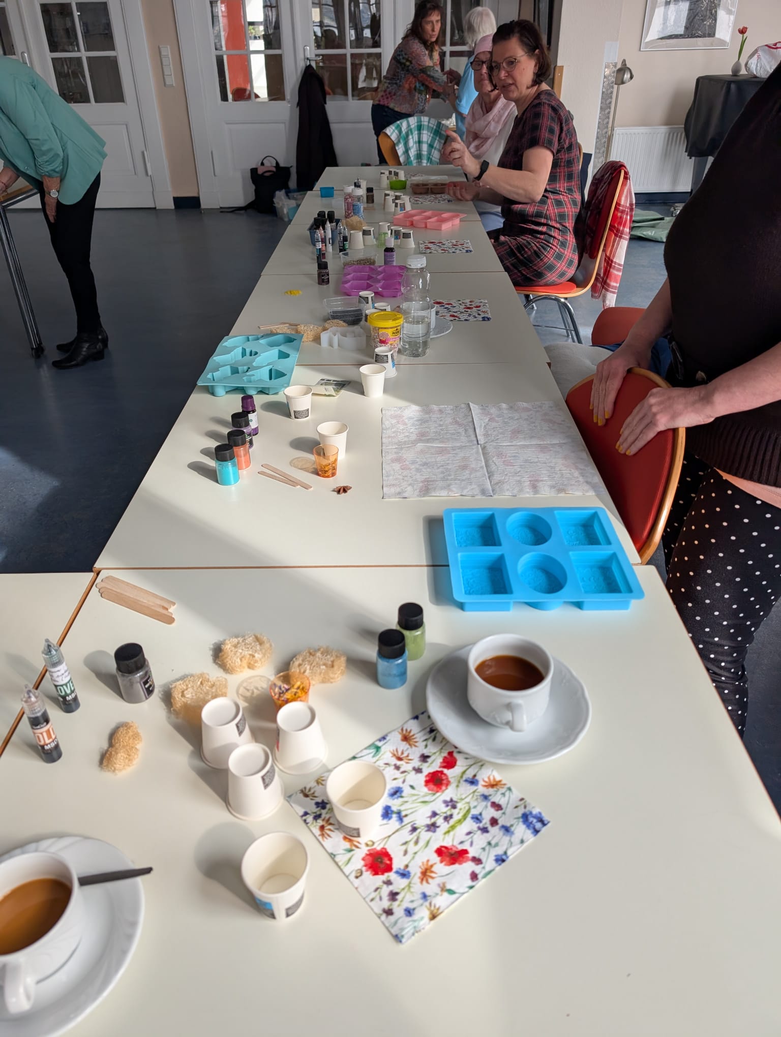 Es gab Kaffee und Kuchen, den wir von den Mitarbeiterinnen des Kiezklubs serviert bekamen. Ein toller kreativer Workshop war das für uns 24 Bewegte Frauen. Jede konnte zwei Seifenstücke mit nach Hause nehmen.
