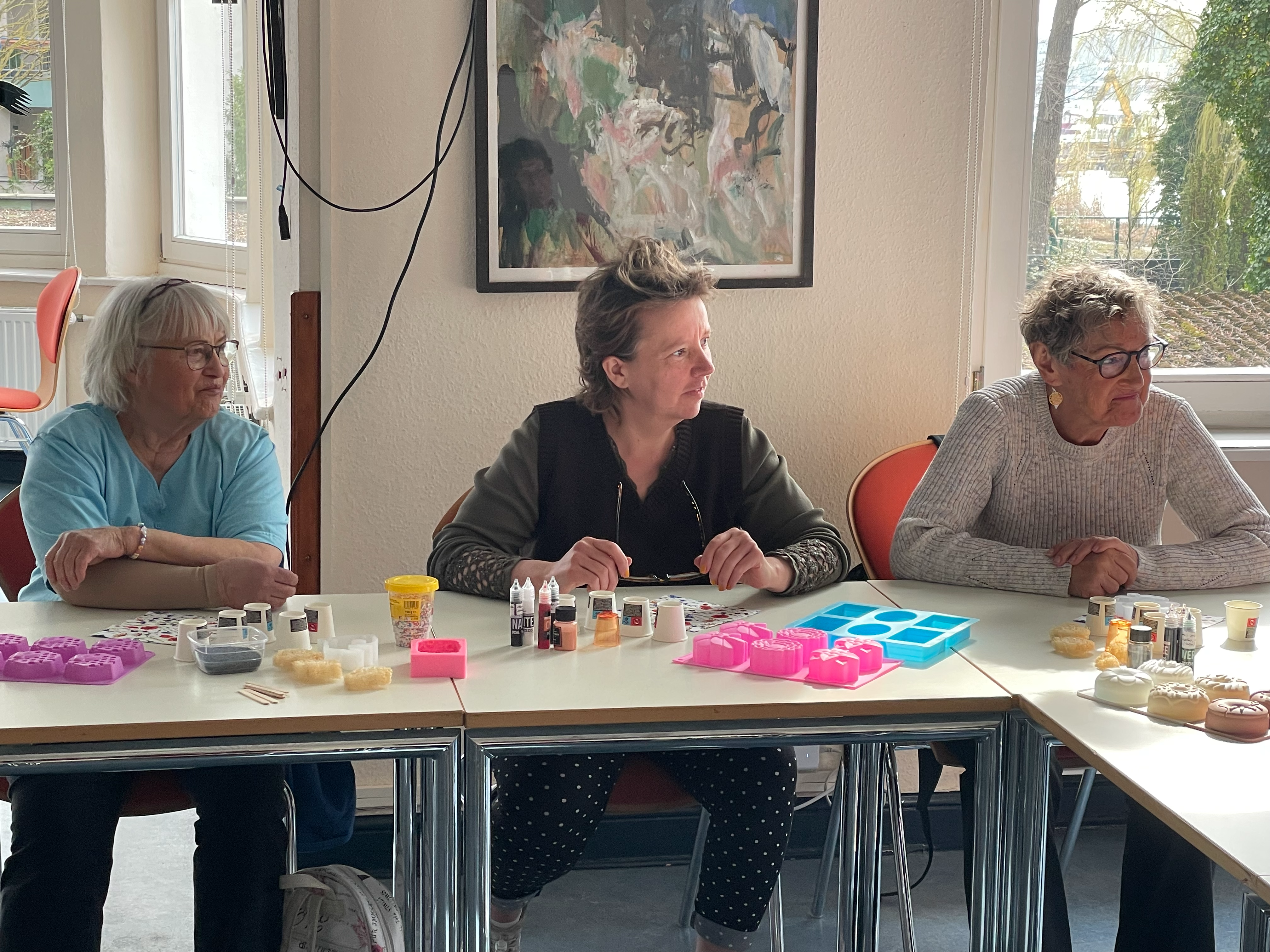 Am 24.03.2026 (ein Dienstag) führten wir unter der Leitung von Brit Betke einen kreativen Workshop der besonderen Art durch. Duftende Seifen in schönen Formen wurden hergestellt.