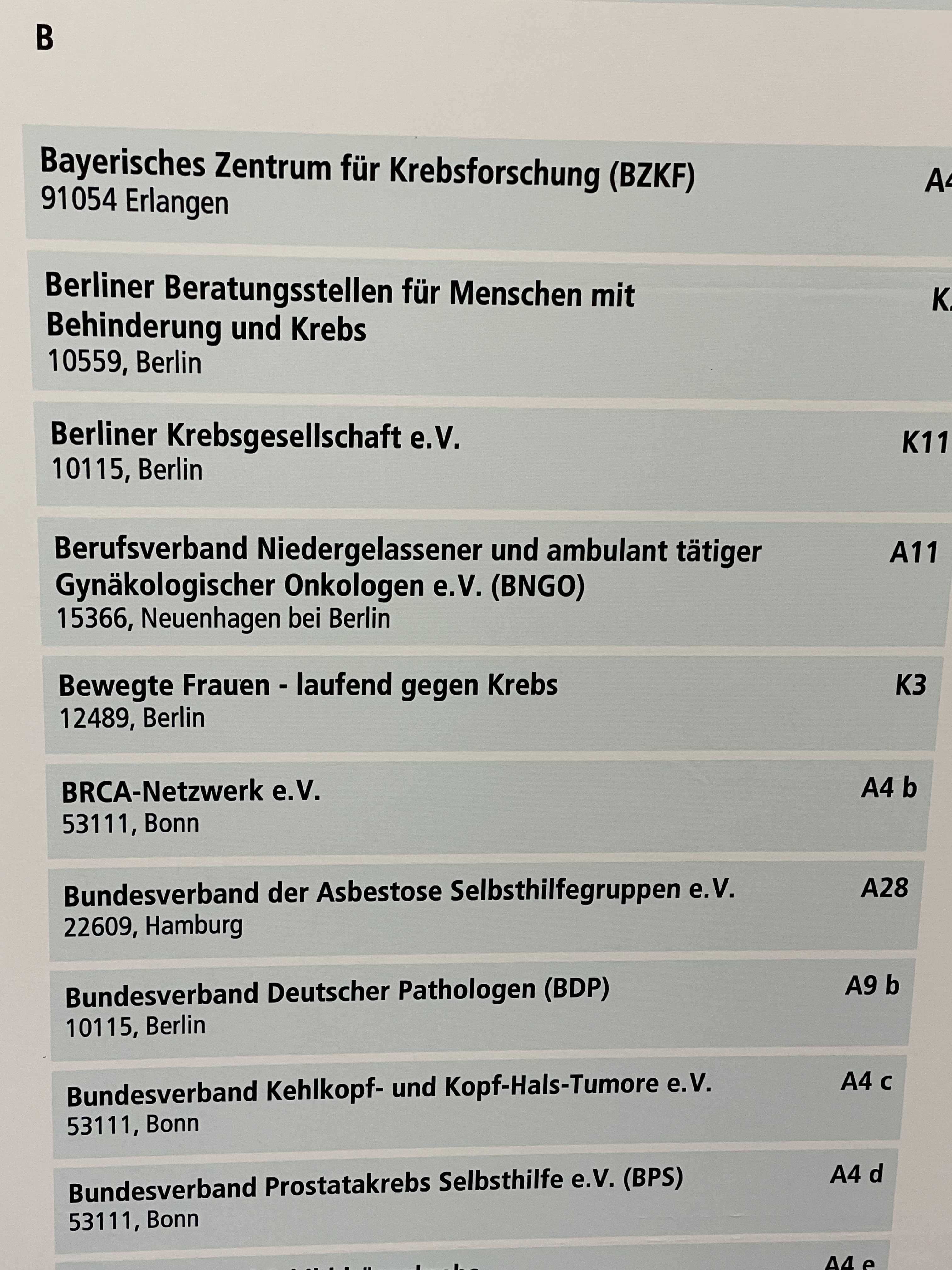 Zusätzlich zum hier aufgeführten Programm können sich Betroffene, Angehörige und Interessierte beim Informations- und Beratungsdienst INFONETZ KREBS persönlich beraten lassen (am Stand der Deutschen Krebshilfe, Nr. A1).